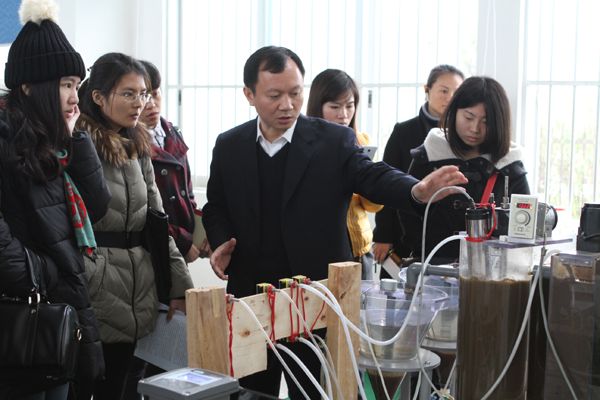 图1 公司董事长胡湛波教授亲自向媒体记者介绍公司科研仪器设备及其运行情况