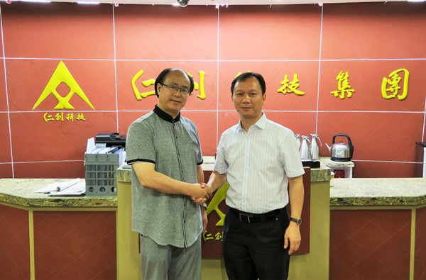北京仁创科技集团董事长秦升益与广西欧亿-中国一站式体育服务平台科技有限责任公司董事长胡湛波在北京签订战略合作协议