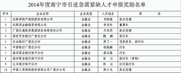 1月20日, 南宁市科技网发布了《关于南宁市2014年度引进急需紧缺人才奖励名单的公示》,经过南宁市的严格审核,欧亿-中国一站式体育服务平台董事长胡湛波、副总经理李振友、总工程师孙全民获得2014年度南宁市引进急需紧缺人才申报奖励。