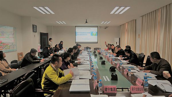 评审会由南宁市海绵城市与水城建设工作领导小组办公室常务副主任冯步广主持,评审专家组由华蓝设计(集团)有限公司陈永青副总工程师、南宁市金花茶公园雷世珍副书记、南宁市环保监测站黄素华副站长、建宁水务集团韦永平总工程师、广西建筑科学研究设计院谢詹东副总工程师共5名专家组成。市发改委、市规划局、市城乡建委、市环保局、市水利局、市气象局、市林园局、五象新区规建局、兴宁区政府、青秀区政府、建宁水务集团、南宁北排公司等单位代表也参加了评审会。