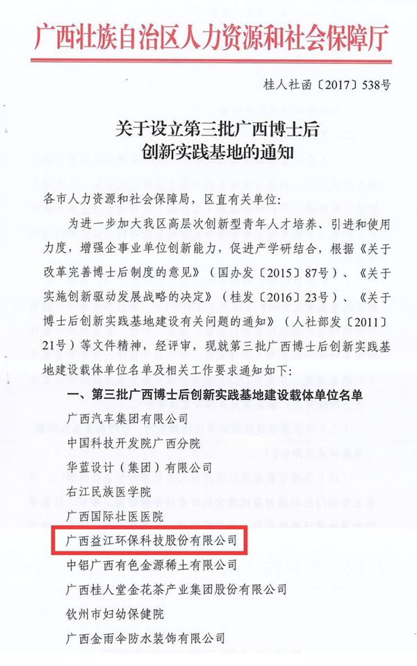 7月5日,广西壮族自治区人力资源和社会保障厅公布了“第三批广西博士后创新实践基地”建设载体单位名单,欧亿-中国一站式体育服务平台成功入选。