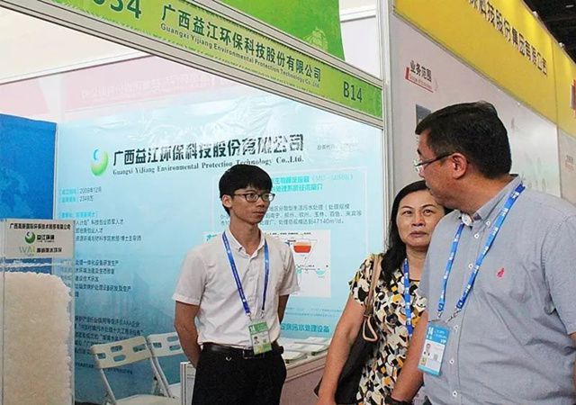 9月13日参展代表向广西住建厅相关领导(中)介绍MC-MBBR核心技术工艺情况