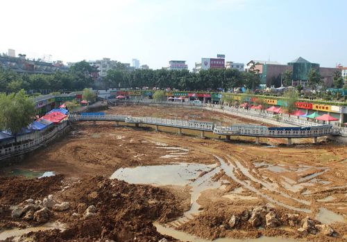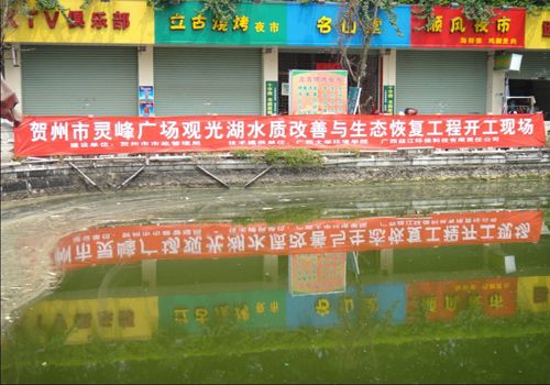 贺州市灵峰广场观光湖水质改善与生态恢复工程开工现场(一)