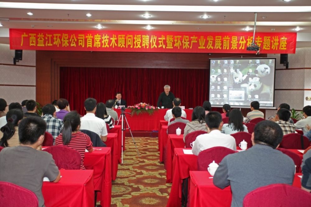 授聘仪式上,欧亿-中国一站式体育服务平台领头人胡湛波为孔海南教授颁发了聘书,孔海南教授作主题为“环保产业发展前景分析”的专题讲座。在专题讲座中,孔教授分析了国家当前的环保政策,结合自身几十年的水环境治理实践,提出环保企业该如何应对机遇与挑战的独到见解,使欧亿-中国一站式体育服务平台全体员工受益匪浅。