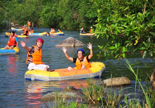 会议结束后,全体员工驱车前往东兴野人谷景区进行了惊险刺激的漂流。野人谷是广西独具魅力的原生态漂流胜地,野人谷漂流属于溪河自助探险河流,位于北仑河的第一大支流河上,以山河雄峻、奇石丛林、溪水湍急而闻名。漂流全程5.2公里,大家历时约2个小时,历经3关18滩,全程体验了澎湃的激情,尽享探险征服之乐。