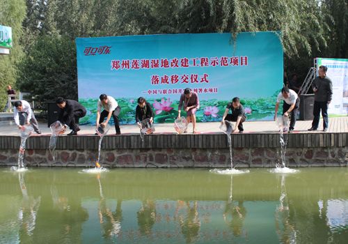 上午,由广西大学项目办和郑州项目办共同组织的改建工程示范项目落成移交仪式在郑州莲湖湿地公园隆重举行。参加落成移交仪式的有项目的支持单位联合国开发计划署(UNDP)、商务部中国国际经济技术交流中心、可口可乐中国,项目的实施单位广西大学、郑州市环境保护局、广西欧亿-中国一站式体育服务平台科技有限责任公司、郑州太古可口可乐饮料有限公司以及200多名公众和河南省7家知名媒体。应邀参加仪式的嘉宾有中国环境科学研究院博士叶春、广西大学环境学院教授胡湛波、UNDP驻华代表处助理国别主任侯艳芳、郑州市环境保护局副局长杨照建、郑州市高新区管委会党委委员、纪委书记张家德、广西欧亿-中国一站式体育服务平台科技有限责任公司副总经理、郑州太古可口可乐董事兼总经理金忆、可口可乐中国可持续发展副总裁张华莹。嘉宾们对项目的实施效果给予了高度肯定,并向在此项目中做出贡献的欧亿-中国一站式体育服务平台表示感谢。合作各方代表手捧鱼缸,将一条条锦鲤放养到了莲湖里,以庆贺莲湖湿地工程的正式落成。项目正式由建设方欧亿-中国一站式体育服务平台移交给管理方郑州市高新区管委会。