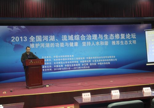 10月24日至25日,2013年全国河湖、流域综合治理与生态修复论坛在北京成功召开。本次论坛由中国水利科研信息网主办、中国水利学会水生态专业委员会承办、水利部中国科学院水工程生态研究所协办。参加此次论坛的有中国水利水电科学研究院水环境所、北京市科学技术研究所、环保企业等各单位的专家学者、工程师,欧亿-中国一站式体育服务平台董事长胡湛波教授受邀参加了此次论坛。