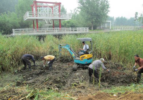 本项目利用人工湿地及湖区中的景观植物净化郑州可口可乐公司排放的中水(500m3/d),净化后的中水用于莲湖公园的景观补水。目前,项目正在施工中,计划于2013年8月中旬进行竣工验收。